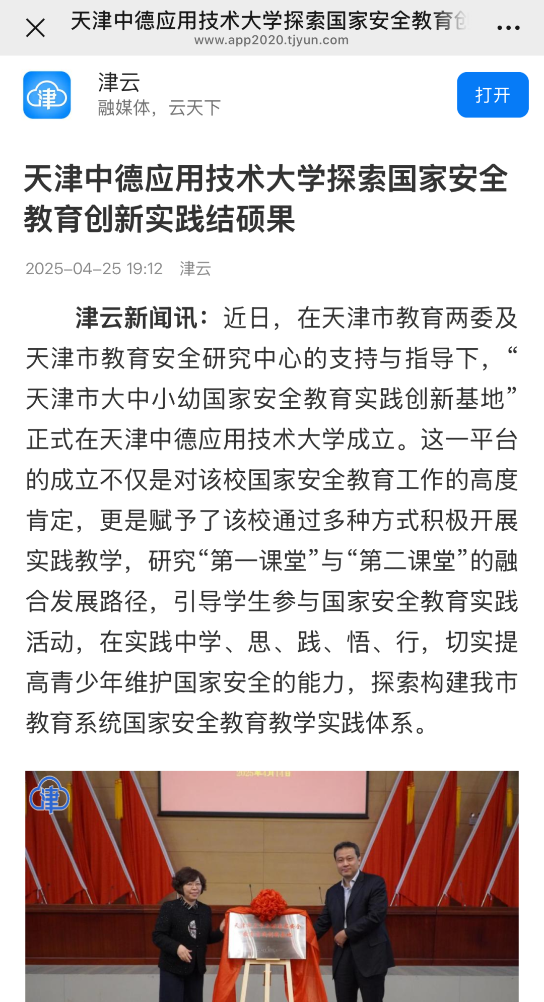 近日,津云報道“天津市大中小幼國家安全教育實踐創(chuàng)新基地”正式在我校成立。