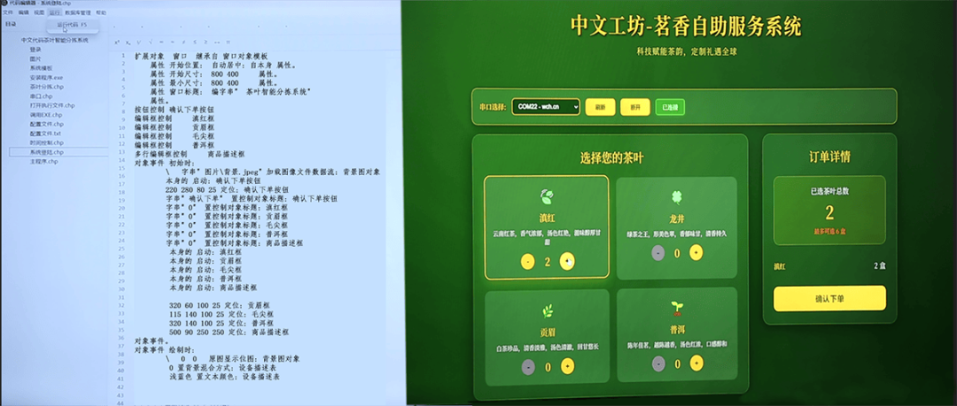 今天,我們用中文代碼漢語編程這一中國“智”造,為傳統(tǒng)茶葉產(chǎn)業(yè)注入了強(qiáng)勁動(dòng)能。這套茶葉智能分揀系統(tǒng),不僅是一次技術(shù)的突破,更是一次文化與科技的融合演繹。每一次精準(zhǔn)分揀,都是漢字文明在數(shù)字時(shí)代的生動(dòng)亮相,每一次靈活適配,都是中國自主創(chuàng)新技術(shù)服務(wù)產(chǎn)業(yè)發(fā)展的真實(shí)寫照。