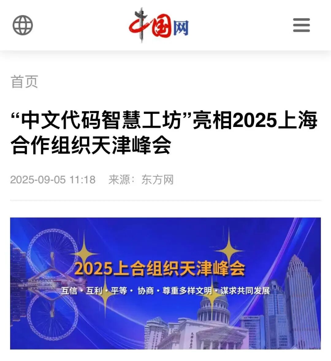 在規(guī)模盛大、規(guī)格頂尖、外國政要云集的2025年上海合作組織天津峰會(huì)期間,以中文代碼自主創(chuàng)新技術(shù)為主題的“中文代碼智慧工坊”在峰會(huì)配套展示活動(dòng)中亮相。