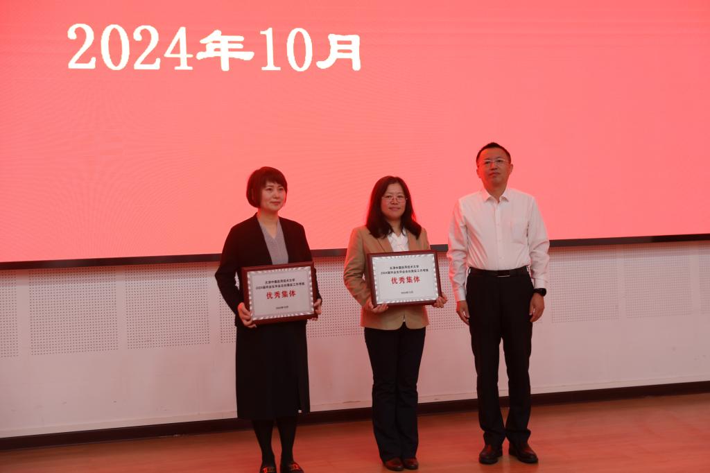 會上,校企合作與就業處主要負責同志分析了2024屆畢業生整體畢業去向落實情況,并介紹了統籌整體工作的經驗和做法。黨委副書記董杰宣讀2024屆畢業生畢業去向工作考核結果及表彰決定。校領導向獲得表彰的學院及先進個人頒獎。軟件與通信學院黨總支主要負責同志做經驗交流發言。