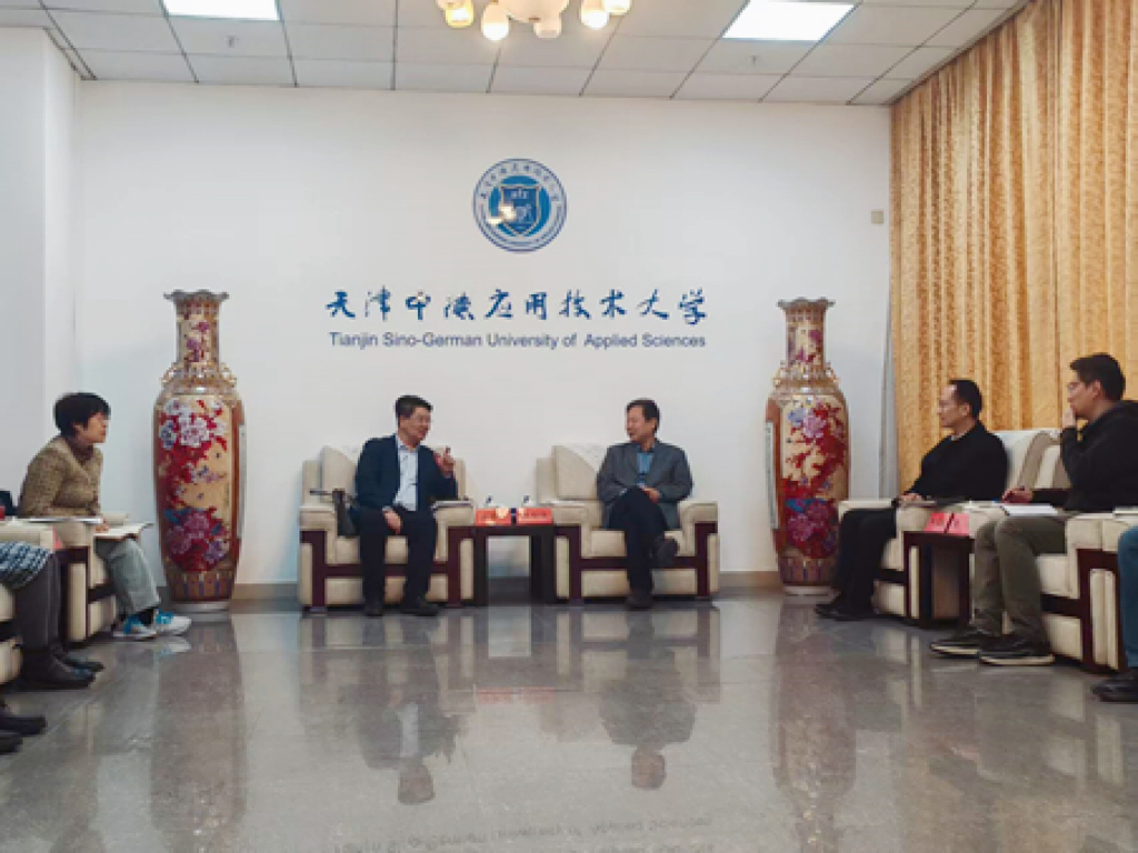 張宗旺對天津中華職教社一行到訪表示歡迎,對天津中華職教社多年來對中德應大的支持和幫助表示了感謝,并介紹了學校應用技術大學建設發展基本情況。他指出,學校以習近平總書記關于教育的重要論述為根本遵循,始終堅持職教特色發展,不斷加強與天津中華職教社的深入合作,以中德之特色積極承擔并參與市社各類重大項目活動,為教育高質量發展持續發力。