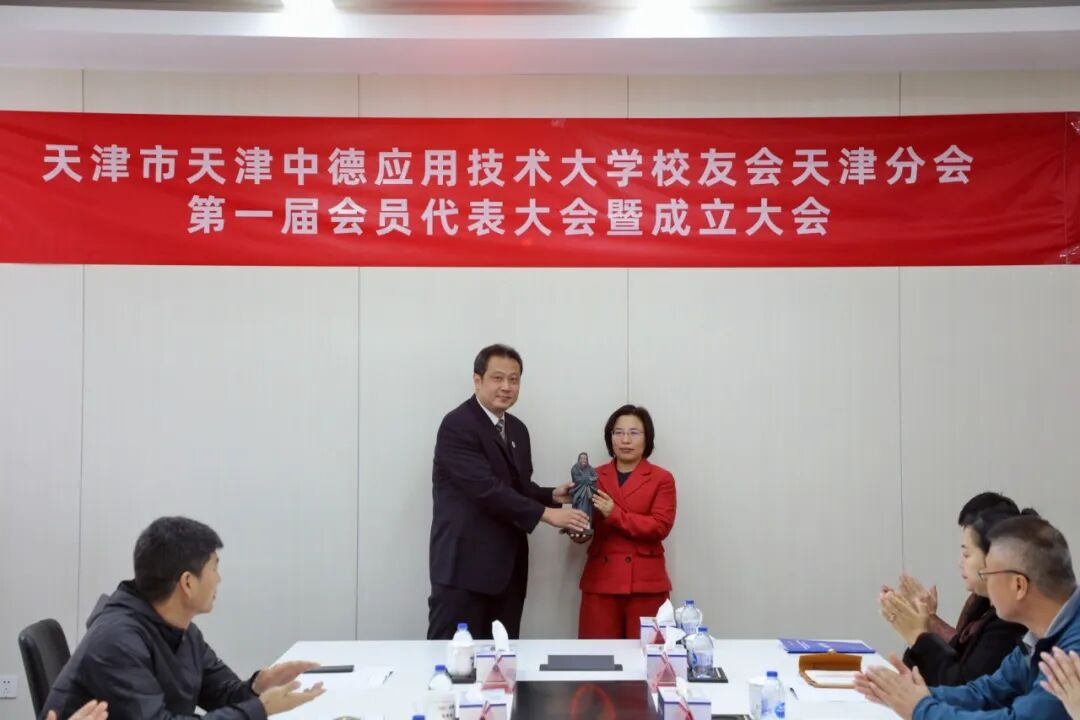 19日上午,天津中德應用技術大學校友會天津分會成立大會在學校行政會議中心順利召開。會上,審議并通過了《天津中德應用技術大學校友會天津分會章程》等相關文件,我校校友,2001屆CAD專業、現任軒云科技有限公司技術總監朱敬鋒向母校捐贈紀念雕塑,校黨委常委、副校長高翔代表學校接受捐贈。學校校友會理事會代表、中層干部及各學院校友代表等三十余人出席會議。此外,2014屆汽車維修與檢測專業、現任天津鑫運汽車租賃有限公司總經理李明,為支持學校校友會建設捐贈3萬元。