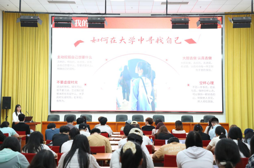 國家獎學金獲得者、多次獲得挑戰杯、互聯網+大賽天津市獎勵的陳昕悅同學,以“如何在大學中找自己”為主題開展宣講。她用風趣的語言串聯起自己一年多的豐富的大學生活,鼓勵同學們勇敢創新,在大學闖出一邊嶄新天地。