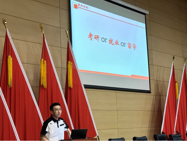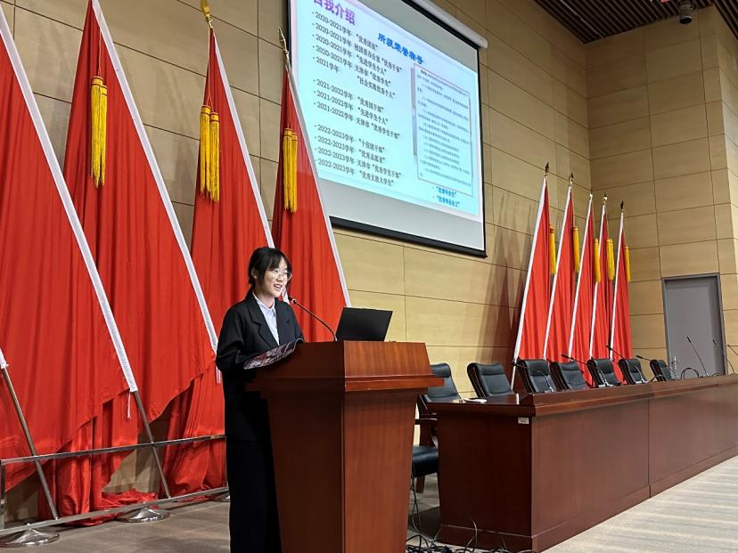 2022-2023學年國家獎學金、2022-2023學年天津市優秀學生干部等獎項獲得者金鵬同學通過講述“人生新階段 挑戰與機遇并存”,希望同學們在未來選擇上把握機會,奮起直上。