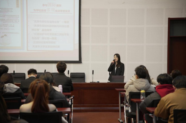 2023-2024學年國家獎學金、天津市王克昌獎學金獲得者,應用外國語與國際教育學院馬子斐同學以“勇敢比完美更重要”為主題開展宣講,她用自己參與無人機創新項目的經歷,鼓勵同學們讓思維突破認知繭房,讓行動跨越領域鴻溝,標注屬于自己的閃亮坐標點。