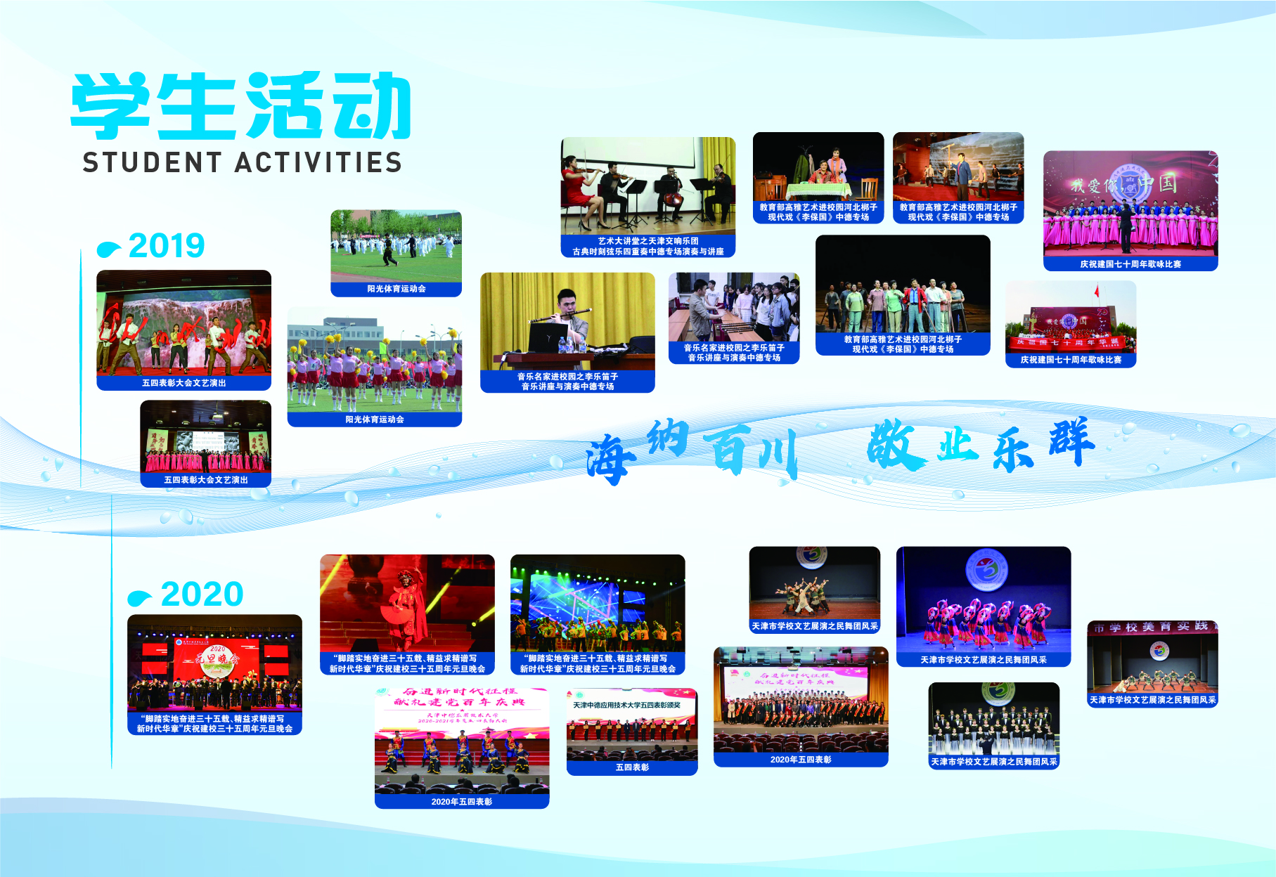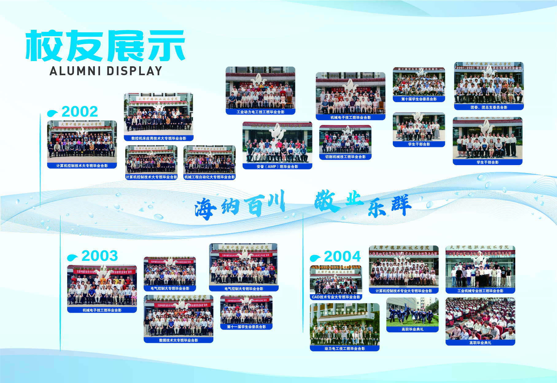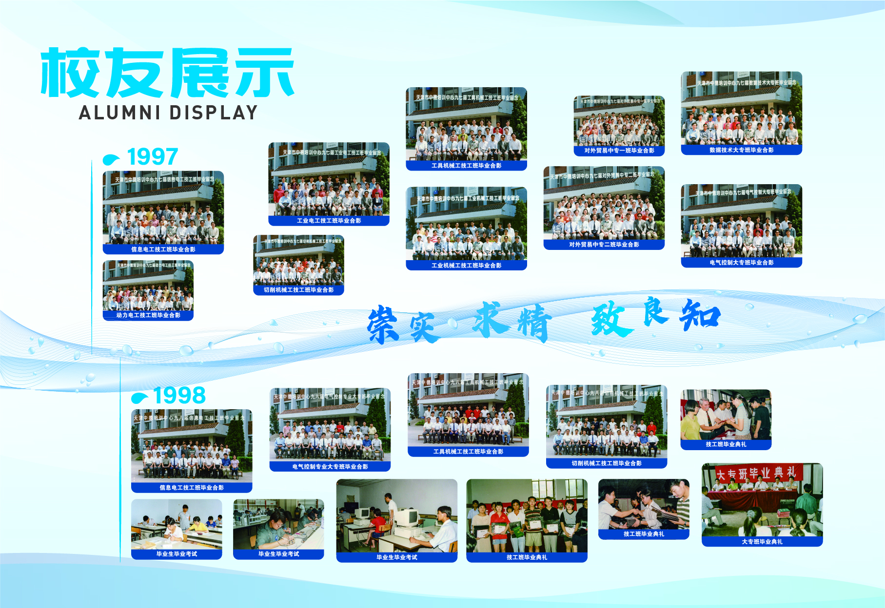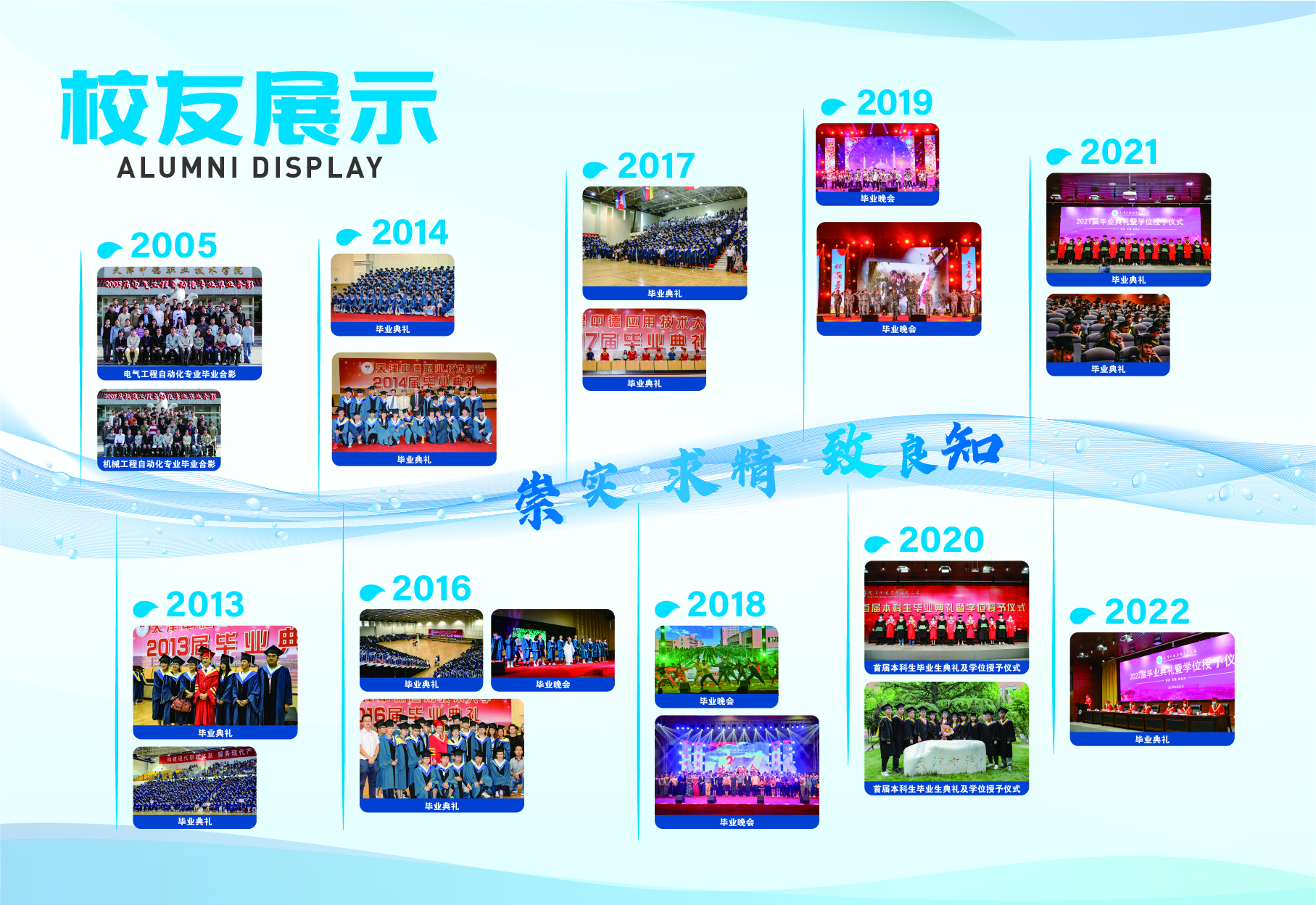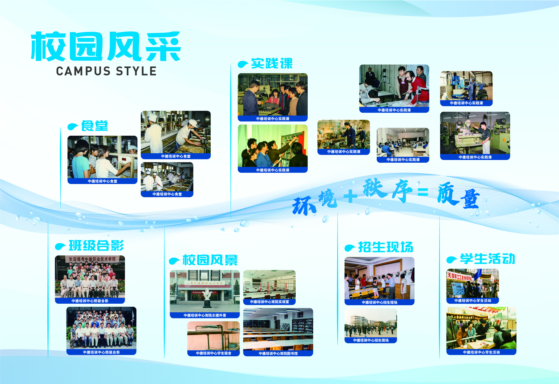 2023-2024學年第二學期開學初,黨委學生工作部(學生處、人民武裝部)在學校檔案系統中挑選出具有代表性的圖文資料,結合中德精神和學生的興趣點,歸納設計出“校友展示”、“校園風采”和“學生活動”三大模塊,并按照年份順序進行排列,以“靈動的海河水”進行串聯,“海河”上印有中德校訓、中德精神或“環境+秩序=質量”的標語,最終形成15面中德文化墻。
