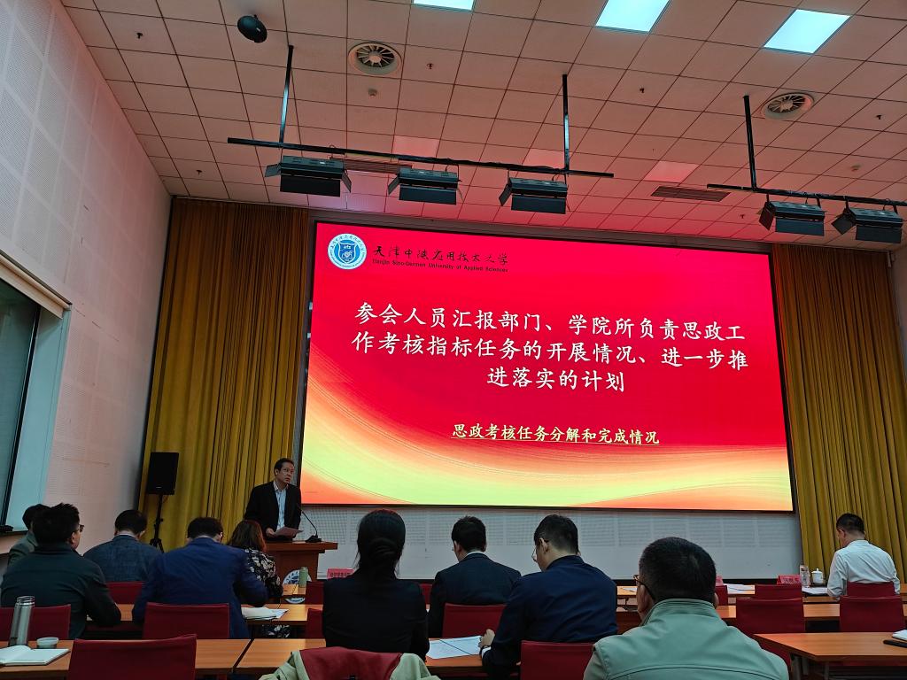 10月18日上午10點(diǎn)在A111,舉行2024年度天津市學(xué)校思想政治教育工作考核暨一站式學(xué)生社區(qū)建設(shè)工作推進(jìn)會。黨委書記張繼東、黨委常委副校長高翔出席,黨委辦公室(校長辦公室)、組織部、宣傳部、紀(jì)委辦公室、機(jī)關(guān)黨委、黨委學(xué)生工作部(學(xué)生處、人民武裝部)、團(tuán)委、人事處、安保處、教務(wù)處、科技處、財務(wù)處、校企合作與就業(yè)處、后勤基建處、國際交流處、馬克思主義學(xué)院的主要負(fù)責(zé)人和9個學(xué)院的副書記參會。會議由高翔副校長主持,主要指標(biāo)的牽頭部門負(fù)責(zé)人匯報各項(xiàng)指標(biāo)完成情況。張繼東書記對思政考核和學(xué)校一站式學(xué)生社區(qū)建設(shè)提出工作要求。